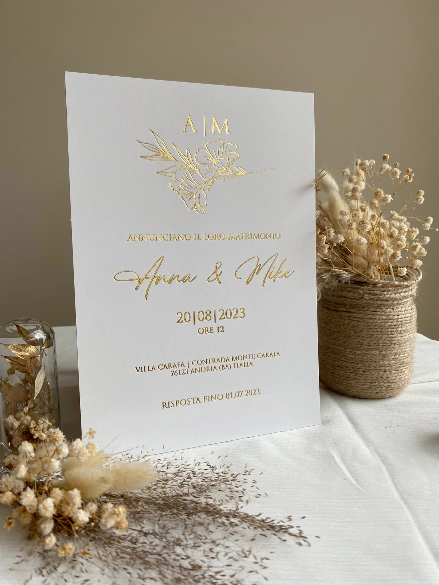 Informations supplémentaires * Si vous souhaitez modifier la police de caractères ou la position des lignes, vous pouvez en faire part à notre service clientèle. Dès que vous aurez passé votre commande, notre service clientèle vous contactera. Ici, vous pouvez discuter de plus de détails. * Vos invitations peuvent être réalisées dans toutes les langues et/ou en plusieurs langues. Pour vérifier votre texte, vous recevrez un modèle. * Vous pouvez payer votre commande en toute tranquillité avec les méthodes de paiement suivantes : PayPal, SOFORT, Giropay, carte de crédit et virement bancaire.